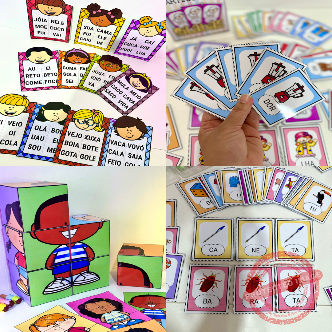 Este combo reúne 4 recursos incríveis que desenvolvem leitura, escrita, consciência fonológica e raciocínio lógico, de forma divertida e eficiente: